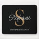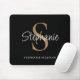 This personalized black mouse pad features elegant script typography and a gold monogram. It is easily customizable.