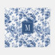 Monogram Elegant Vintag Blue Floral Muster Fleecedecke