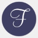 Monogram F, White on Navy Blue, Runder Aufkleber