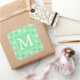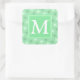 Monogram Federgrün Kreismuster Quadratischer Aufkleber
