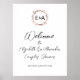 Eine schlichte monogramm blumengeschmückte Rose mit Goldfolie als Begrüßungsschild für Paare. Einfach mit Ihren Daten personalisieren. Modernes boho Begrüßungsschild für Paare duschen editierbar, anpassbar, kalligrafisch handgeschriebenen Schriftart, einfach, elegant.