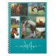 Erstellen Sie Ihr eigenes Foto-Collage-Notebook, indem Sie die Platzhalter-Images durch Ihr eigenes persönliches Bild ersetzen und den Kalligraphie-Skript-Vorlagen Ihren Namen + Monogramm hinzufügen. Fügen Sie sieben Ihrer Lieblings-Fotos von Ihnen und Ihrem Haustier Pferd. Ein einzigartiges typografisches Thema, mit Monogramm auf das Schulheft mit einer persönlichen Touch von 7 Ihrer besten Fotos auf aquamarinem blauen Hintergrund. HINWEIS: Um die Platzierung der Fotos anzupassen, navigieren Sie zum Entwurfstool. Wählen Sie das Foto aus, das aus der Liste der Fotos auf der links Seite angepasst werden muss, und klicken Sie auf die Schaltfläche für die Karte rechts.