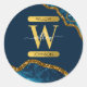 Monogram für Blue & Gold Agate Geode Glitzer Runder Aufkleber