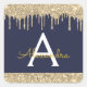 Monogram für den Navy Blue-Gold-Sparkle-Glitzer Quadratischer Aufkleber