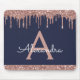 Navy Blau und Rose Gold Pink Moderne Sparkle und Dripping Glitzer Girly Monogram Name Monogram Mousepad. Dieses Chic Mousepad kann so angepasst werden, dass es Ihren Vornamen und Ihren Initialnamen enthält.