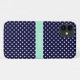 Navy Blue und White Polka Dot Pattern, Mint Ribbon Name Monogram Label Passen Sie dies mit Ihrem Namen, Monogramm oder anderen Text. Sie können auch Schriftart ändern, Schriftart- und Schriftart-Größen anpassen, Text verschieben, etc. Bitte beachten Sie, dass es sich um ein digital erstelltes Grafikdesign handelt, das auf das zugrunde liegende Produkt übertragen wird. Das Design selbst enthält kein echtes Band, Etiketten, Metalle, Prägung usw. ©FantabulousPatterns Alle Rechte vorbehalten