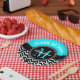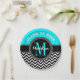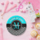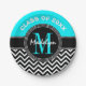 Elegantes Aqua- und Zickzack Schwarz-Muster mit dem Namen und Monogramm des Geburtstagsmädchens in der Mitte.