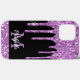Eleganter, moderner, mädchenhaft leichter lila Glitzer Tropfen kundenspezifische personalisierte Namen und mit Monogramm Handy-Gehäuse. Dieses Design verfügt über hellpastellfarbene Pflaume lila oder orchid lila Farbe Glitzer funkeln Tropfen auf schwarzem Hintergrund mit benutzerdefinierten personalisierten Monogramm Initial- und Vorname Text Vorlage. Perfektes weibliches Geschenk für Mädchen und Frauen, die trendige Glamour-Dinge Lieben hübsch. Wenn Sie Hilfe oder passende Artikel benötigen, kontaktieren Sie mich bitte.