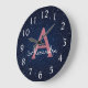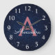 Monogram für Navy Blue & Rose Gold Sparkle Glitzer Große Wanduhr