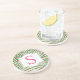 Der tropische Drink-Untersetzer ist mit einem grünen Palmenblattmuster aus Schichtenblättern mit einem neutralen, hellbeigen Hintergrund gestaltet. Der weiße Zierrahmen hat einen Monogramm-Buchstaben in hellrosa (kann angepasst werden), den Sie mit Ihrem Vornamen personalisieren können.