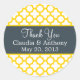 Mit Monogramm, gelbes Quatrefolienmuster auf weißem Hintergrund Hochzeit danke Ihnen Aufkleber. Gelbe und weiße Quartrefolienmuster mit Kohleakzent.