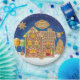 Erstellen Sie Ihr festliches Weihnachtsdesign mit dieser Collage mit einem farbenfrohen Lebkuchenhaus, das mit Zuckerrohr, Geleebohnen, Knopfköpfen, goldenen Glocken und Mistleton geschmückt ist. Lebkuchengebäck und Weihnachtsbaum, sowie große Lollippensträucher auf Kuchendecken, verleihen dem Glockenturm noch mehr Süße. Blauer Nachthintergrund mit fallendem Schnee und Schneeflocken. Ein passender Lebkuchenkochtennisplatte und Hausflagge runden das Aussehen ab. Ideal für alle Arten von Weihnachts-Partys und Feiertagsveranstaltungen. Ersetzen Sie die Beispielmonogramme und Text durch Ihre eigenen für ein personalisiertes Design.