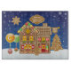 Erstellen Sie Ihr festliches Weihnachtsdesign mit dieser Collage mit einem farbenfrohen Lebkuchenhaus, das mit Zuckerrohr, Geleebohnen, Knopfköpfen, goldenen Glocken und Mistleton geschmückt ist. Lebkuchengebäck und Weihnachtsbaum, sowie große Lollippensträucher auf Kuchendecken, verleihen dem Glockenturm noch mehr Süße. Blauer Nachthintergrund mit fallendem Schnee und Schneeflocken. Ein passender Lebkuchenkochtennisplatte und Hausflagge runden das Aussehen ab. Ideal für alle Arten von Weihnachts-Partys und Feiertagsveranstaltungen. Ersetzen Sie die Beispielmonogramme und Text durch Ihre eigenen für ein personalisiertes Design.