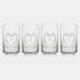 Monogram Glasware Set mit romantischem Schwan Design. Perfekter Trinkbehälter für Ihre Zuhause und kann auch für Hochzeitsfeiern, Feierlichkeiten und vieles mehr genutzt werden. Personalisieren Sie den Text mit dem gewünschten Anfangstext. Das Set enthält 4 Gläser. Verwenden Sie die Vorlage, um Ihr eigenes Set für Monogramm-Glaswaren zu erstellen.