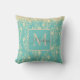 Monogram Gold Floral on Green Aquamarin Throw Kiss Kissen