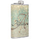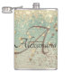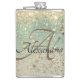 Monogram Gold Glitzer Stars auf grüner Runde Flachmann