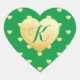 Monogram Gold Hearts Imitate Foil Pattern auf Gree Herz-Aufkleber