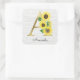 Monogram Gold Sunflower Girly Floral Initial A Quadratischer Aufkleber