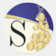 Monogram Golden Blue Frohe Weihnachten Runder Aufkleber