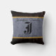Monogram graue Rustikale Burlap Linen Wood Look Kissen