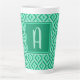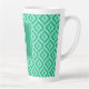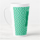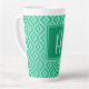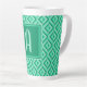 Trinken Sie Ihren Drink aus dieser Monogram Green 3-Tone Diamond Muster Latte Tasse. Es zeichnet sich durch ein geometrisches Rautenmuster in drei grünen Farbtönen aus, wobei ein Initial in hellgrün an einem dunkelgrünen Quadrat angebracht ist. Personalisieren Sie es mit Ihrem ersten. Geben Sie Ihrer Kaffeezeit einen zusätzlichen Pop.
