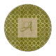 Elegantes Gedenkgeschenk für die Neuvermählten, das es Ihnen ermöglicht, ihren verheirateten Familiennamen zu einem ersten Mal hinzuzufügen. Muster hier ist Quatrefolie mit einer Moosgrün goldfarbenen Farbe.