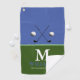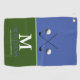 Um mit dem Namen und dem Initial des Golfers zu personalisieren... ein stilvolles Monogramm-Design auf einem grünen und blauen Golf-Handtuch