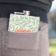Schönes Grünmuster von William Morris. Grün und braun, weißer Hintergrund, orangefarbener Schild mit Monogramm und individuelle Name. Elegant und raffiniert.