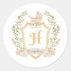 Dieser Baby-Ankündigung-Umschlag Aufkleber verfügt über ein Monogramm-Wappen mit einem Babywagen in neutralem Farbschema.