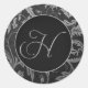 Monogram H Silver and Black Damask Wedding Siegel Runder Aufkleber