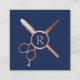Monogram, Hair Stylist Moderne Rose Gold Navy Blue Quadratische Visitenkarte