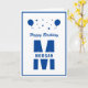 Monogram Happy Birthday any Age White Blue Stars Karte