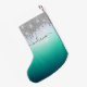 Monogram Script Silver Glitzer Holiday Keepake Kleiner Weihnachtsweihnachtsweih Strumpf mit modernen türkisfarbenen lila Omelette und Tropfen Glitzer. Fügen Sie einfach einen Namen hinzu, um diese Persönlichkeit zu machen, indem Sie auf die Schaltfläche "Personalisieren" klicken