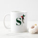 Eine monogramm-Weihnachtsfeier, die Ihre kühnen Monogramm- und Urlaubselemente (Heilige Beeren & Blätter, Kiefernäste und Kiefernkegel) enthält. Diese Tasse verbindet kühn minimalistisch, grün, Design mit einer festlichen Natur. Bereit für Ihre Tasse? Fügen Sie einfach Ihr Monogramm hinzu, fügen Sie Ihre Tasse in Ihren Warenkorb, und haben Sie ein frohes Weihnachtsfest. Monogram Holiday Weihnachts-Kaffee Tasse Holidayday Design | ©Melissa Patton - Designer/Illustrator