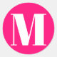 Monogramm heißrosa fuchsienweiße Anfangsnummer Klassischer Rundkleber. Eleganter, anpassbarer Initial, Buchstabe. Weißer Text, heiß rosa, fuchsischer Hintergrund.