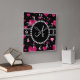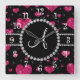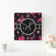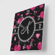 Monogram Hot-Pink-Glitzer-Herzen Schwarze Diamante Quadratische Wanduhr