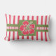 Ein wunderbar sommerliches Thema tropisch hawaiianische Art Lumbar geformt Outdoor Kissen, die mit allen Outdoor-Lebenden Produkte in der Hot Pink Hibiskus Collection exklusiv von der SalonOfArt.com. Auf einer Seite befindet sich das Monogramm in einem rosa Quadrat mit drei Hibiskus-Blume, einem Streifen und einem grünen Hintergrund. Die beiden Seiten sind mit großen, kühnen, rosa und weißen Streifen versehen, die mit einem Kalkgrünen Quadrat, einer großen, einsamen rosa Hibiskus-Blume und dem gleichen Streifen in der Mitte versehen sind. Mix und passend, um Ihre Veranda, Terrasse, Terrasse oder Deck zu erhellen.
