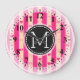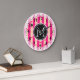 Monogram Hot Pink Stripes Modernes Herzmuster Große Wanduhr