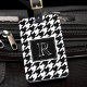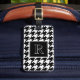 Travel in style with this elegant monogrammed luggage tag. It's black and white houndstooth pattern offers a sleek and professional look and feel. Personalize the monogram with your initial and add your contact details to the back. Use to adorn your suitcase on vacations or business travel.