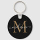 Erstellen Sie Ihren eigenen personalisierten schwarzen runden Schlüsselanhänger mit Ihrem hübschen handgeschriebenen Skriptnamen und Monogramm.