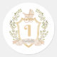 Dieser Baby-Ankündigung-Umschlag Aufkleber verfügt über ein Monogramm-Wappen mit einem Babywagen in neutralem Farbschema.