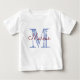 Mit Monogramm Babyname Baby Tee zum Anpassen. Handskizzierte Anfangs- und Skriptnamen in dunkelblau und bordeauxrot auf einem blauen Tee. Geben Sie den Namen und den Anfangsbuchstaben Ihres Babys ein. Arbeitet auch für ein Mädchen!