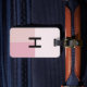 Einfache moderne Gepäckmarke in Monogramm. Die erste ist in modernen Farbblöcken aus Rosa, Pastellfarben und Blassrosa mit Namen und Adresse auf der Rückseite zentriert.