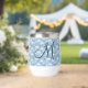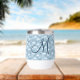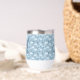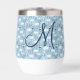 Blauer und weißer Boho blühender Thermalweintumbler, der mit Ihrem ersten mit Monogramm werden kann. Das ist ein tolles Geschenk für sie und Ihr Brautparty.
