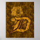 Eleganter Monogramm-Buchstabe D in Goldsatin mit einem zarten Poster-Druck auf der Blume der Pony.