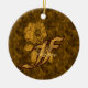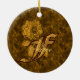 Monogram Initial F Elegant Gold Peony Personalized Keramik Ornament