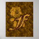 Eleganter Monogramm-Brief F in Goldsatin mit einem zarten Poster-Druck für die Blume von Pony.