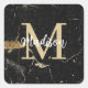 Monogram-Initial-Gold-Black-Marmor Quadratischer Aufkleber