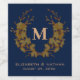Monogram Initial Gold Floral Pattern Navy Blue Weinetikett