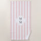 Monogram Initial Light Blush Pink White Stripes Strandtuch